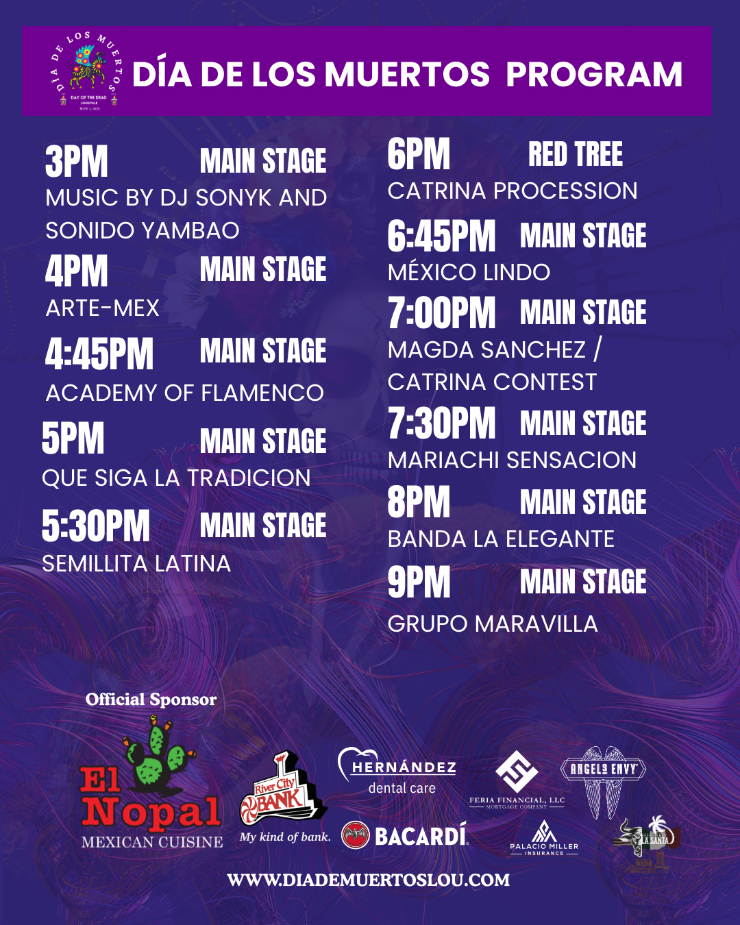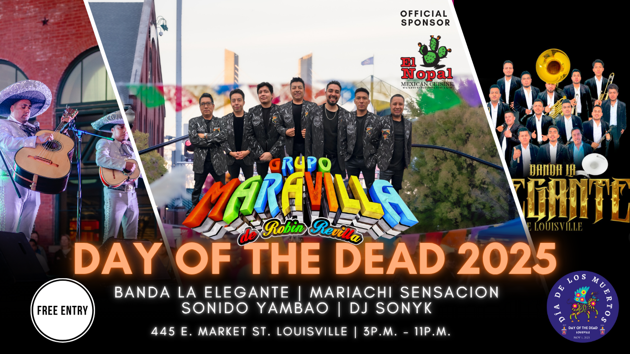 SAVE THE DATE: Saturday, November 1, 2025. From 3 p.m. to 11 p.m. at 445 E. Market St. FREE street festival for the whole family, with altars, music, and more to honor our loved ones. Don’t miss it!